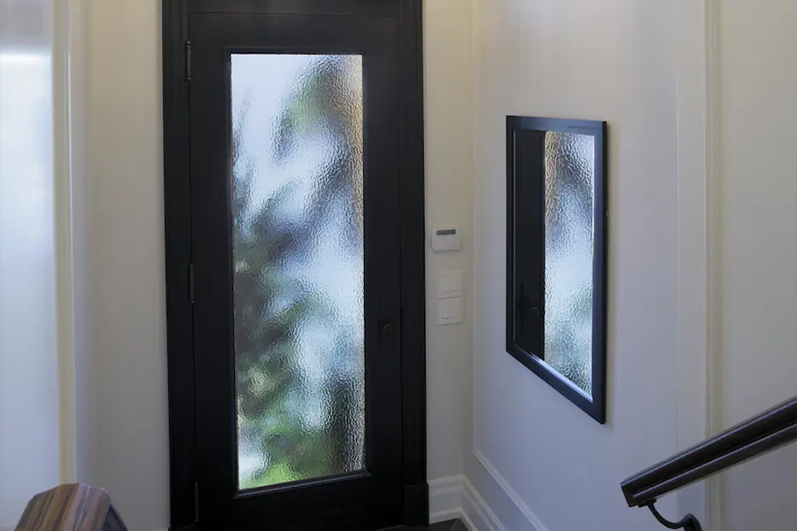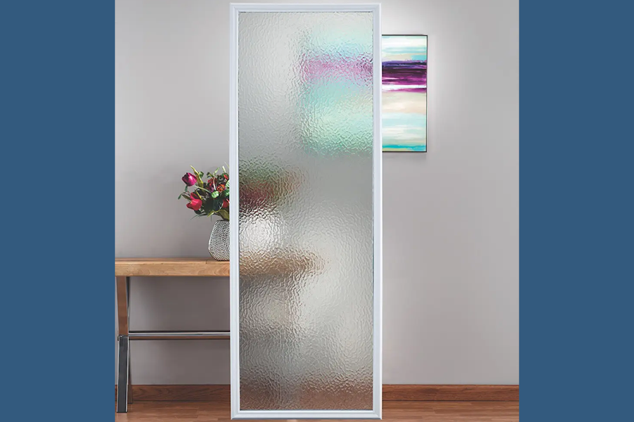 Whether soft wisps of clouds or a 30,000-foot view of mountainous terrain, Cumulus takes a view from afar and brings it down to earth in your entryway door. Cumulus offers a low privacy level.