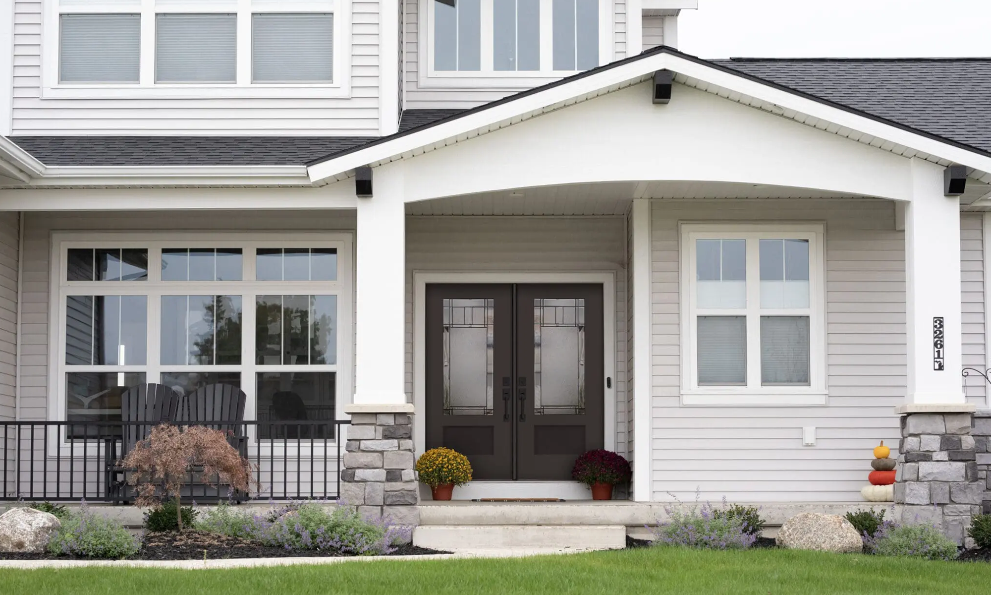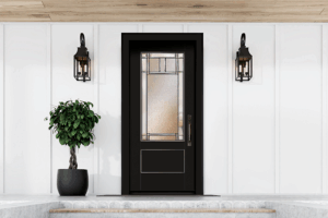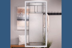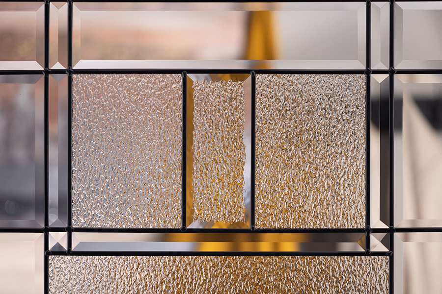 Enjoy a beautiful mix of clear and granite beveled glass between rectangles of patina caming with Berkeley, a design that adds texture to your home and elevates your entryway. Berkeley provides a low level of privacy.