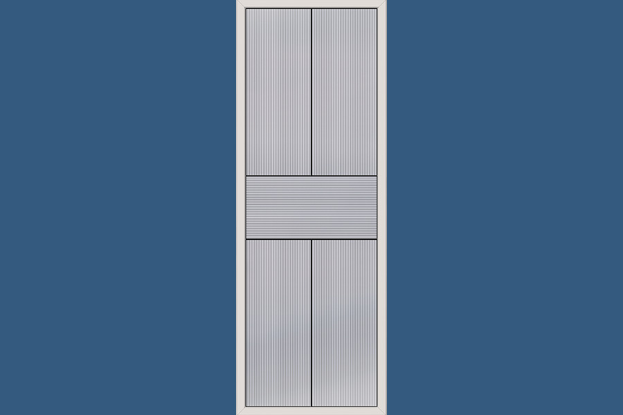 Rill glass features subtle horizontal and vertical lines that create a clean, modern grid pattern. The understated design delivers a contemporary look with moderate privacy and excellent light flow.